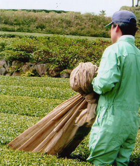 茶の木の足元まで広げていきます。